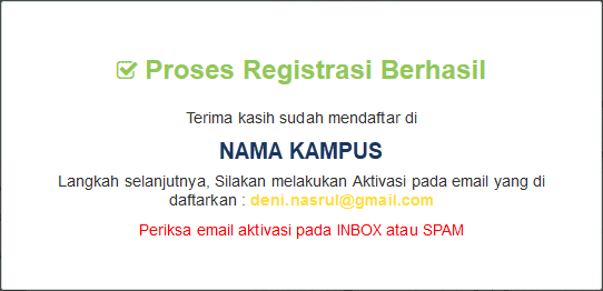 - Apabila tidak menerima email aktivasi / notifikasi pada folder inbox, periksa folder spam. Terkadang email bisa masuk ke folder spam.