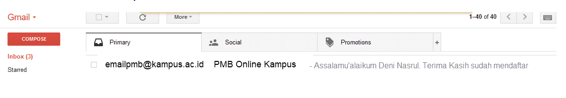 tahapan selanjutnya dari pmb online tidak masuk ke folder spam